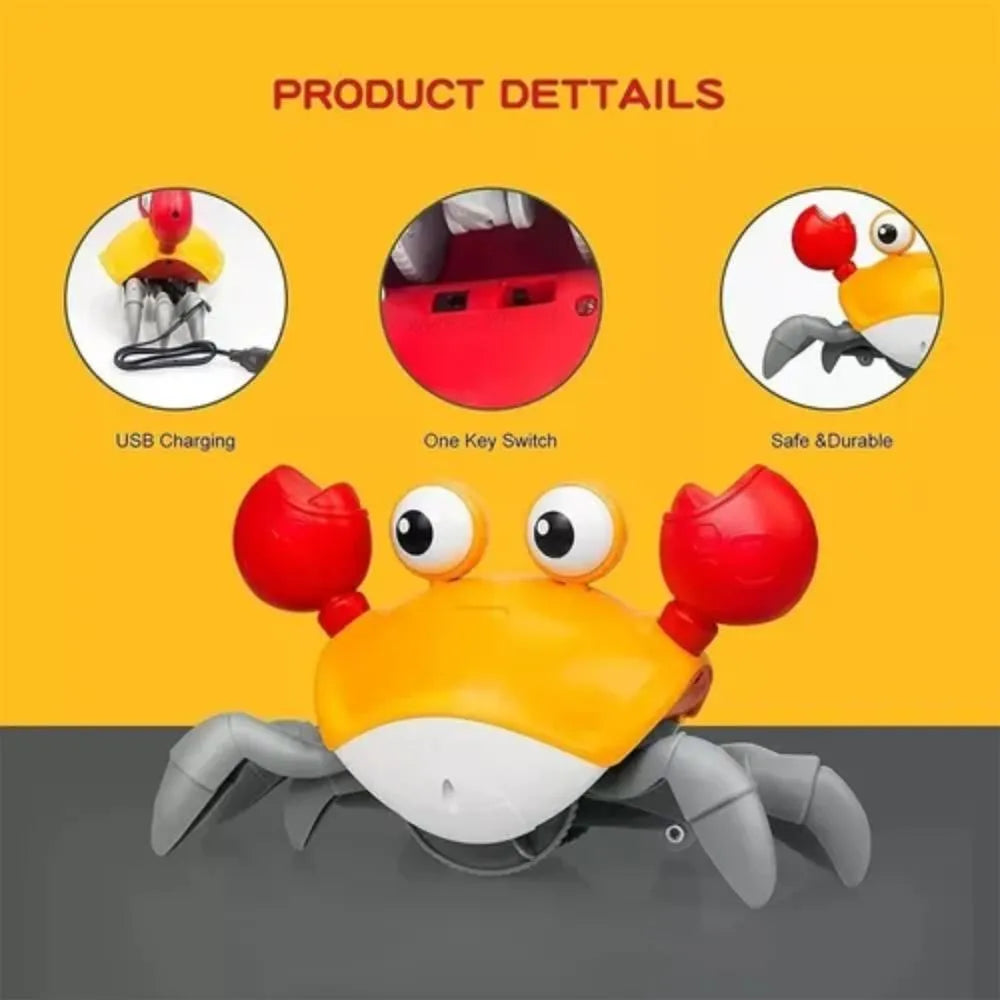 Juguete para bebés Crawling Crab: se mueve rápido, se desliza hacia los lados como un cangrejo real, reproduce sonidos y música divertidos y se ilumina. Tiene sensores que invierten su dirección cuando se acerca a un obstáculo. Una nueva cesta de pascua para bebés es todo un éxito. Juguetes para bebés de 0 a 6 meses: ¡A los bebés de 0 a 6 meses les encanta ver correr al cangrejo cuando están boca abajo! Ideal para que los bebés lo sigan y ejerciten los músculos del cuello. Excelente juguete para motivar a los niños que no quieren levantar la cabeza cuando están boca abajo. Ayuda al bebé a gatear: su bebé de 6 a 12 meses se sentirá absolutamente atraído por la forma en que se arrastra el cangrejo. El bebé intentará arrastrarse hacia él y atraparlo. Por supuesto, gracias al sensor de evitación de obstáculos, nunca podrían atraparlo. Un cangrejo de gran éxito: no solo entretiene a tu pequeño, sino también a tus mascotas. A los niños mayores también les encanta. Toda la familia quedará hipnotizada con este delicioso cangrejo de juguete Montessori. ¡Bastante divertido e interactivo! Hace que todos se diviertan y se diviertan. Regalos personalizados: este bonito cangrejo rastrero es un regalo único para mejorar el tiempo boca abajo de los bebés de 0 a 3 a 6 a 12 meses, fomentar el gateo de los bebés de 0 a 6 a 12 meses, ayudar a los niños de 1 año o más a caminar y hace sonreír a los niños. El cangrejo rastrero es una nueva ola de regalos de cumpleaños y fiestas, como calcetines de Navidad, cestas de pascua para bebés, etc.